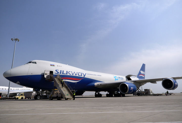 2025年4月2日,一架阿塞拜疆丝绸之西部航空公司的货机停靠正在郑州新郑国际机场停机坪上。记者 李嘉南 摄!